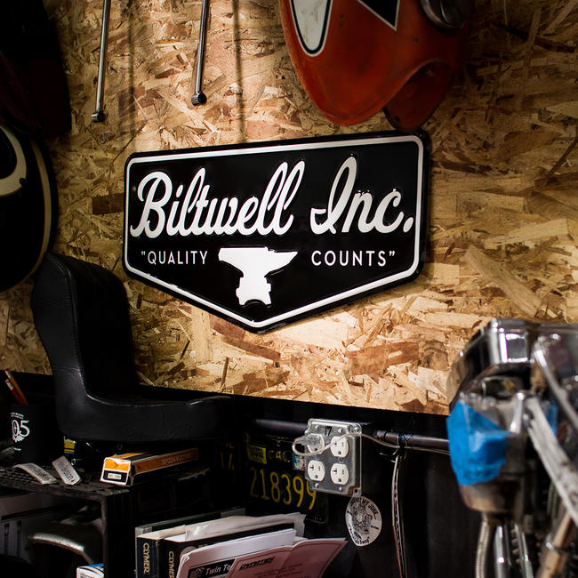 In 50 years one of these made in USA stamped aluminum Biltwell shop signs might sell for 5,000 bucks on season 75 of "American Pickers." Until that day comes, you can buy one for less than the price of two large Costco pizzas. Stamped construction with screenprinted graphics.